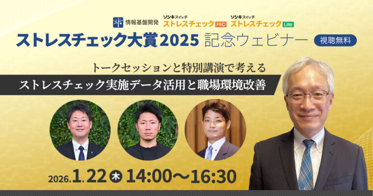 弊社・情報基盤開発は2026年1月22日(木)、「ストレスチェック大賞2025 記念ウェビナー」をオンライン配信致します。2025年12月、ストレス…