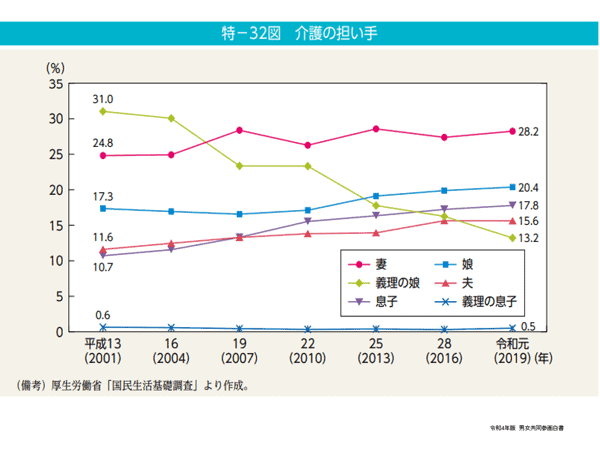また、介護の担い手となっているのは誰かというのを、『国民生活基礎調査』で厚生労働省が調べています。