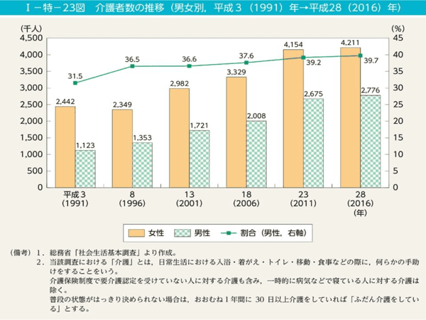 これにはいろんな要因があり、核家族化になってきて親族の数が減ってきているような現状から、自分の親は自分で介護していくという背景も見えてきています。