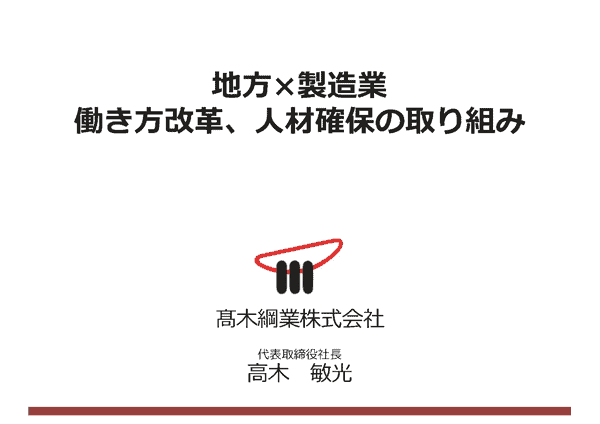 その経営の第一線に携わる、髙木綱業株式会社代表取締役の高木敏光氏に『地方×製造業 働き方改革、人材確保の取り組み』というテーマでお話をうかがいました。