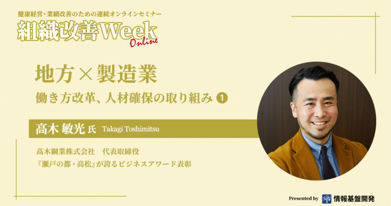 当記事は、弊社が過去に開催したオンラインセミナー「組織改善Week」より髙木敏光氏の『地方×製造業 働き方改革、人材確保の取り組み』を書き起こしたアーカイブレポートの再編集です。