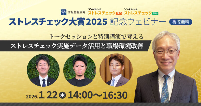 弊社・情報基盤開発は2026年1月22日(木)、「ストレスチェック大賞2025 記念ウェビナー」をオンライン配信致します。